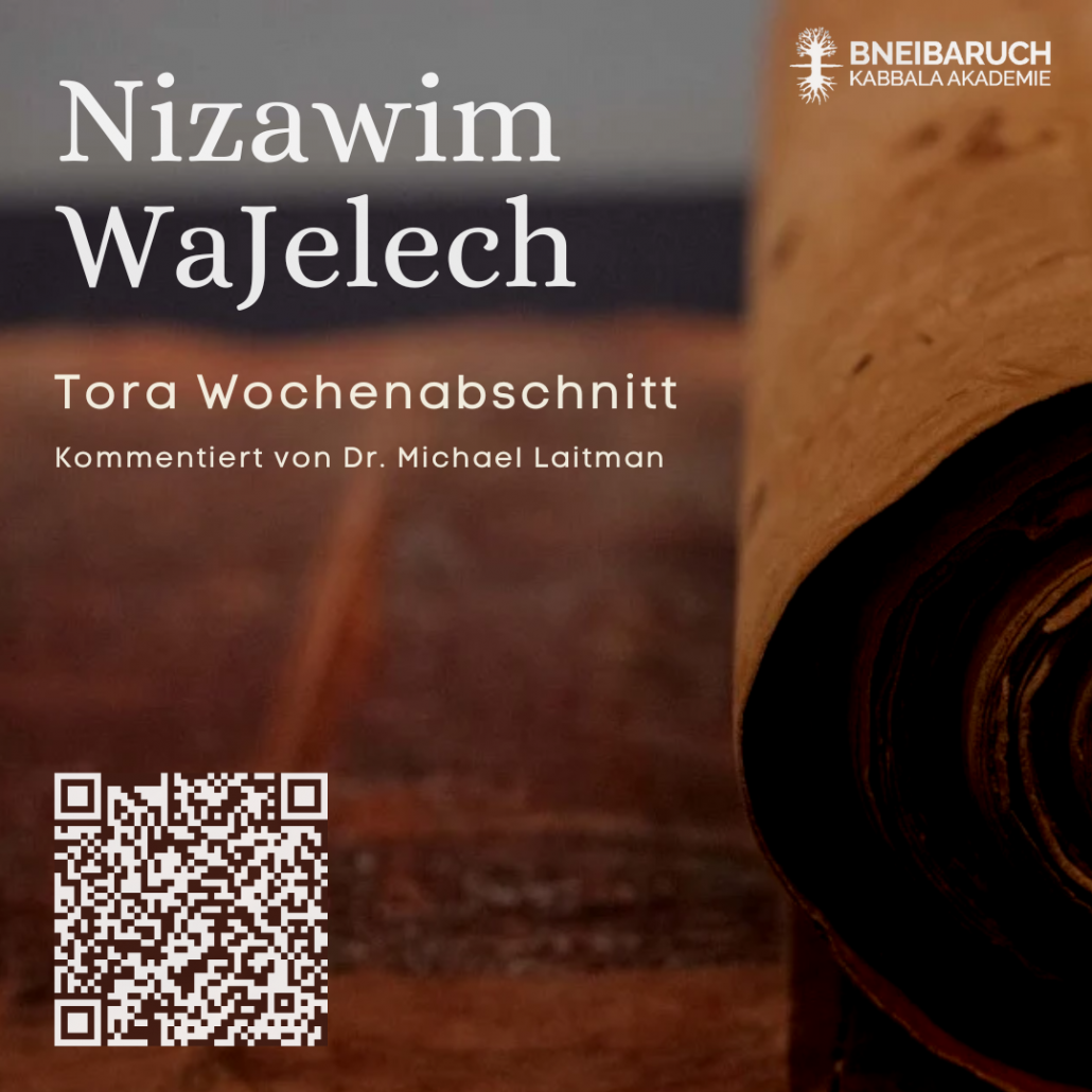 Der Tora Abschnitt Nizawim (Ihr steht) beschäftigt sich mit Moses‚ Rede bezüglich des Bundes zwischen Israel und dem Schöpfer. Moses erklärt, dass die Tora für das ganze Volk Israel bestimmt ist. Sie wurde jedem einzelnen Menschen und der gesamten Nachwelt gegeben. Er hebt auch den Grundsatz der Wahl hervor: Sollte ein Mensch andere Götter anbeten, wird er aus dem Land Israel verbannt. Möchte er sich aber korrigieren, so führt der Weg über die Buße. Der Schöpfer überlässt den Menschen die Wahl zwischen Leben und Tod, befiehlt ihnen aber: „So erwähle nun das Leben“ (Deuteronomium, 30:19).